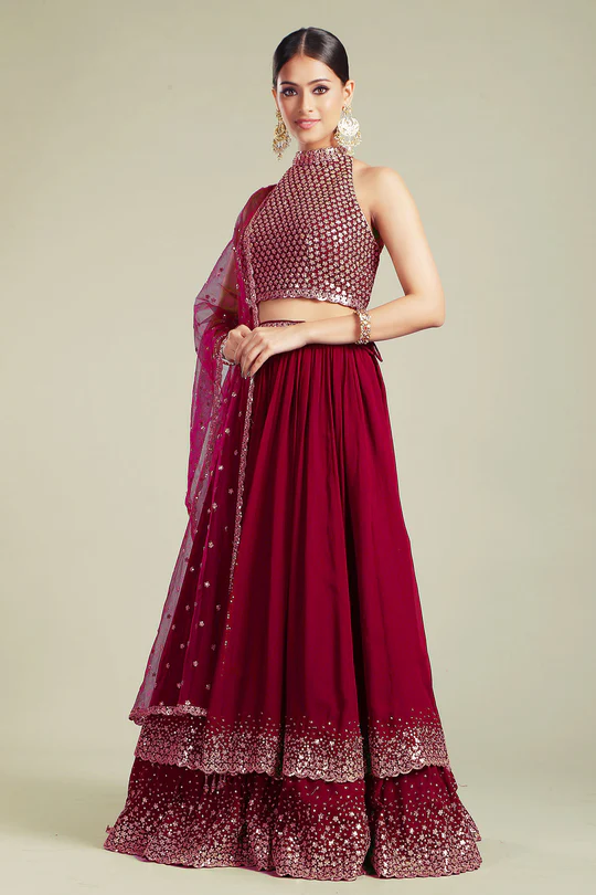 Maroon Georgette Lehenga